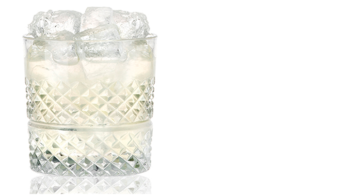 - In einen mit Eiswürfeln gefüllten Tumbler abseihen.
