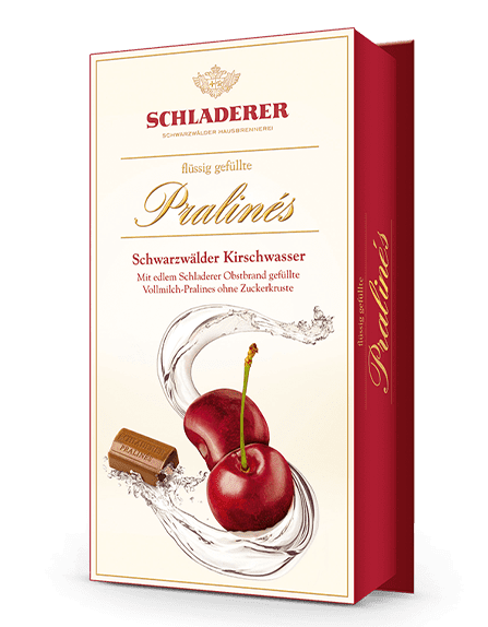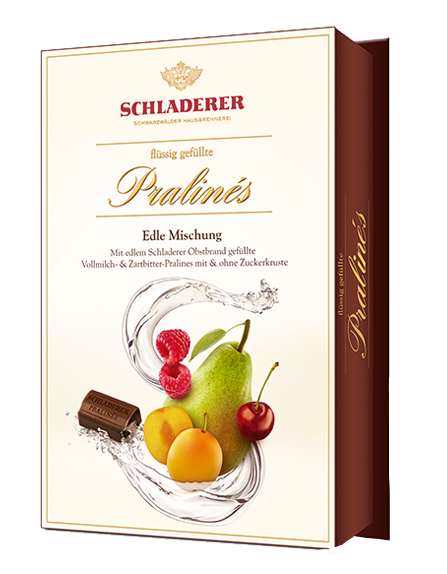 Savor the flavor: this precious mix of pralines contains special milk or dark chocolate pralines with or without sugar crust, filled with our very own Schladerer Fruit Brandy. In a small or a large box, Williams Pear Pralines, Mirabelle Brandy Pralines, Black Forest Kirsch Pralines and Wild Raspberry Brandy Pralines await.