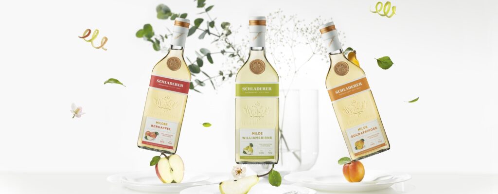 The mild alternative to traditional fruit brandy: Savoring the moment in a glass with pure fruit and reduced alcohol. Refined with aromatic fruit extracts and natural juices, created with care and craftsmanship using the finest natural ingredients – all with a view to providing a uniquely mild and fruity taste experience.